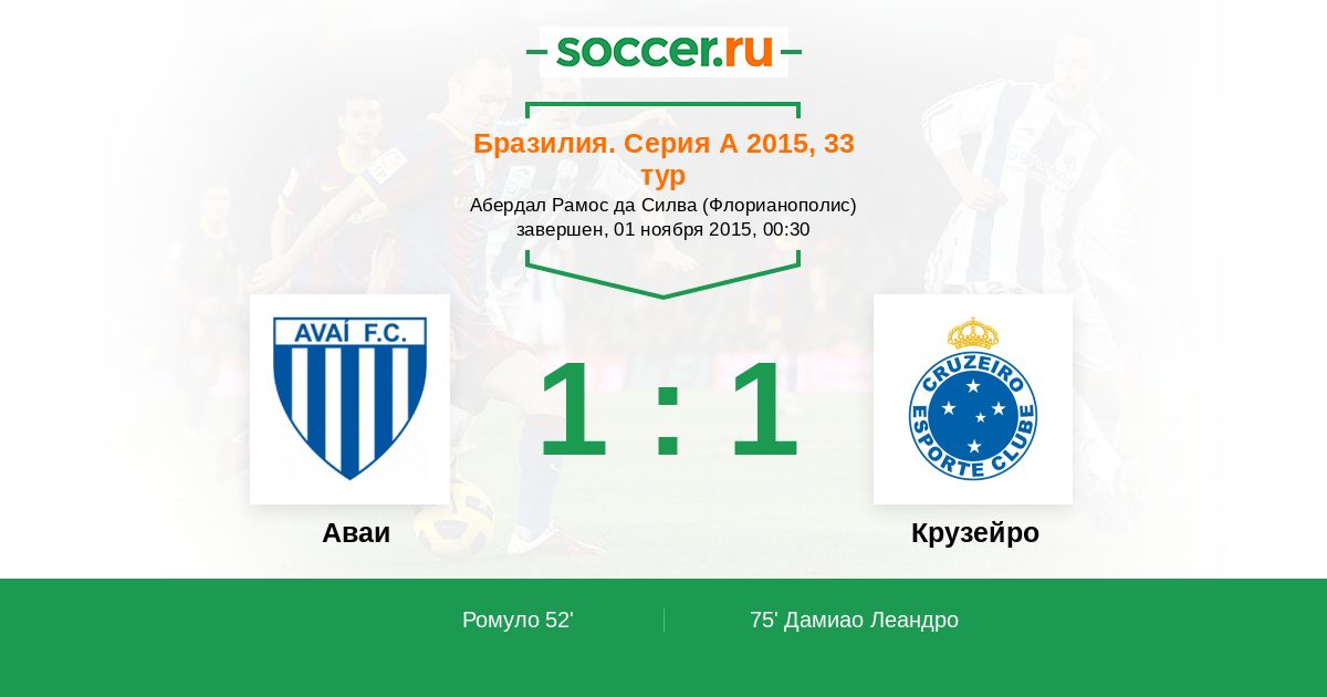 75' (1:1) Дамиао Леандро (9) (Гомес Вильян (25))