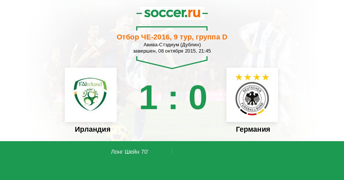 Запасные: 23 Рэндольф Даррен (с 44'), 9 Лонг Шейн (с 65'), 12 Мейлер Дэвид (с 69'), 10 Кин Робби, 1 Форд Дэвид, 5 Пирс Алекс, 3 О'Кейн Юнан, 13 Дойл Кевин, 7 МакГиди Айден, 2 Макшейн Пол, 6 МакГолдрик Дэвид, 20 Гибсон Даррон