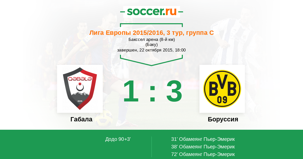 31' (0:1) Обамеянг Пьер-Эмерик (17) (Ройс Марко (11))