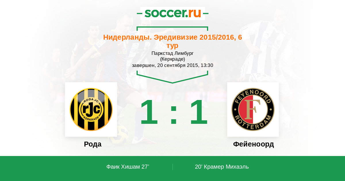 20' (0:1) Крамер Михаэль (31) (Карсдорп Рик (2))