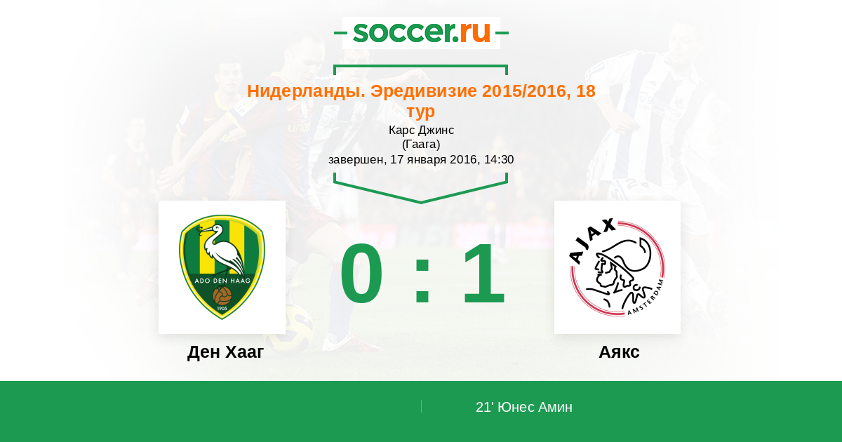 21' (0:1) Юнес Амин (11) (Вельтман Йоэл (3))