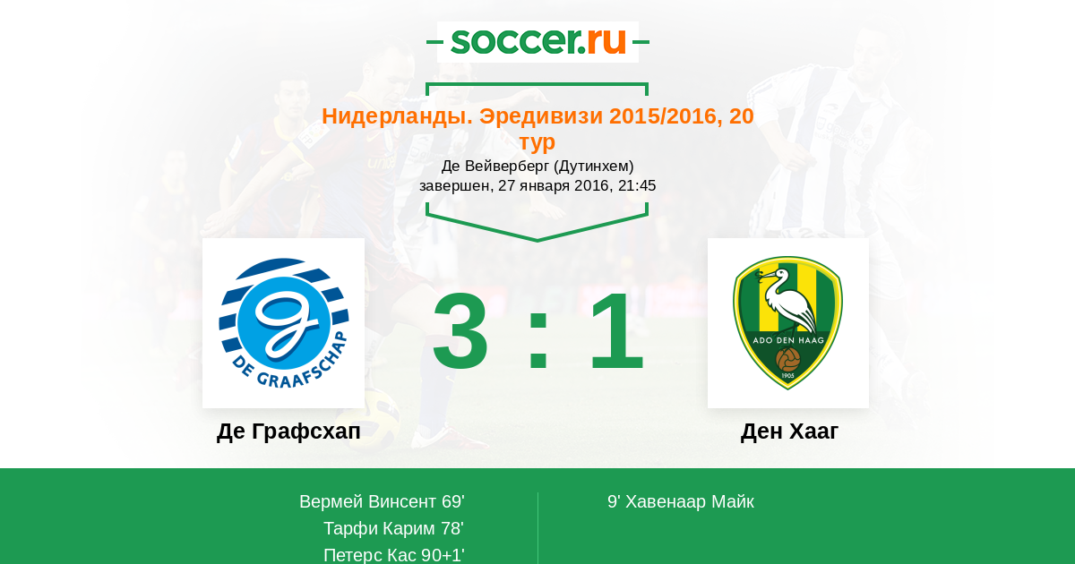 69' (1:1) Вермей Винсент (9) (Смитс Брайан (14))