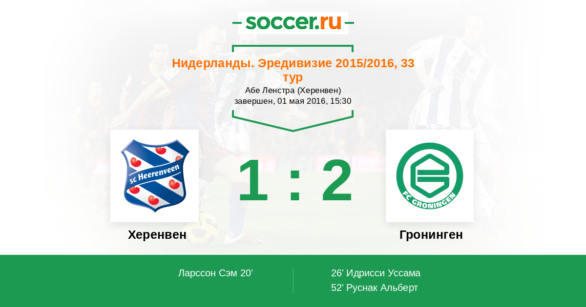 52' (1:2) Руснак Альберт (10) (Дрост Йеспер (17))