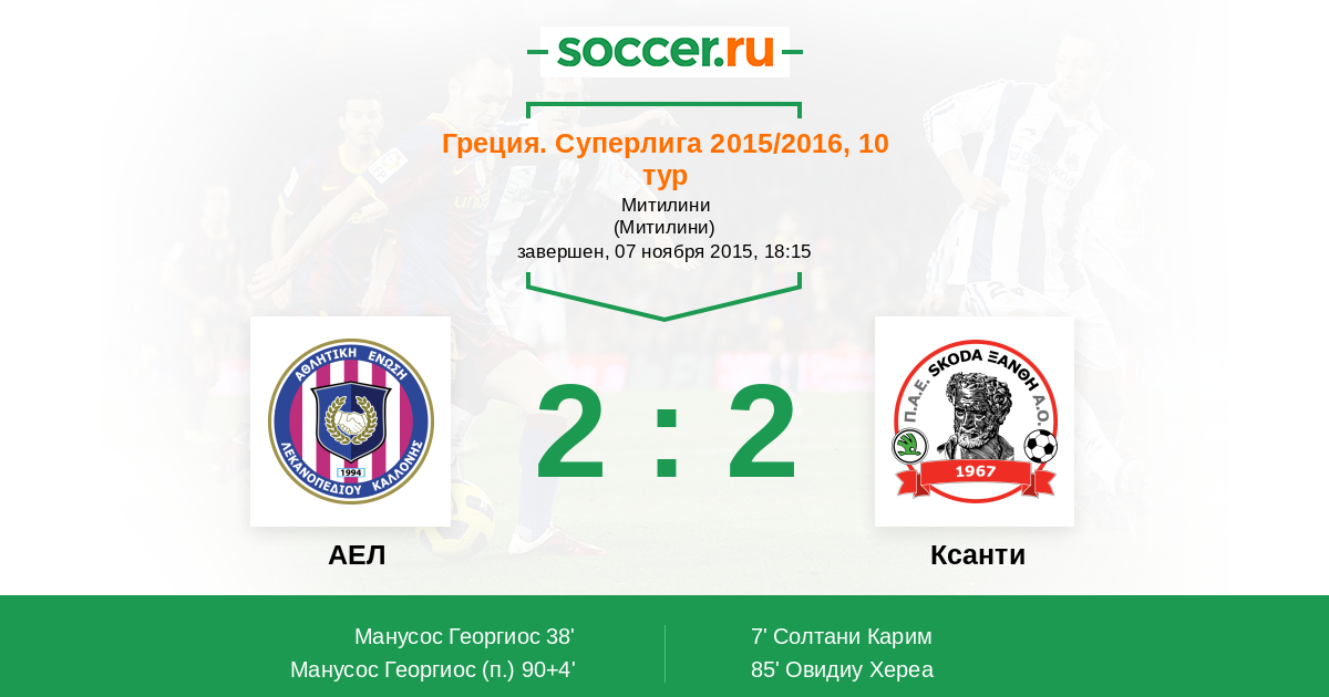 38' (1:1) Манусос Георгиос (9) (Георгиу Фотис (11))