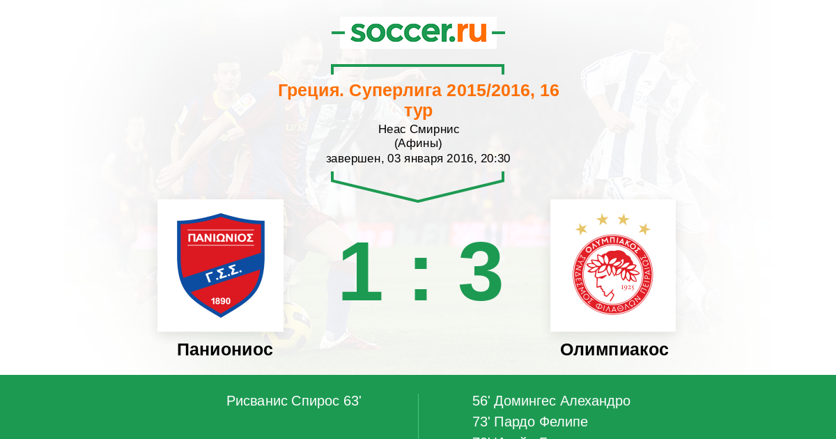56' (0:1) Домингес Алехандро (10) (Фортунис Константинос (7))