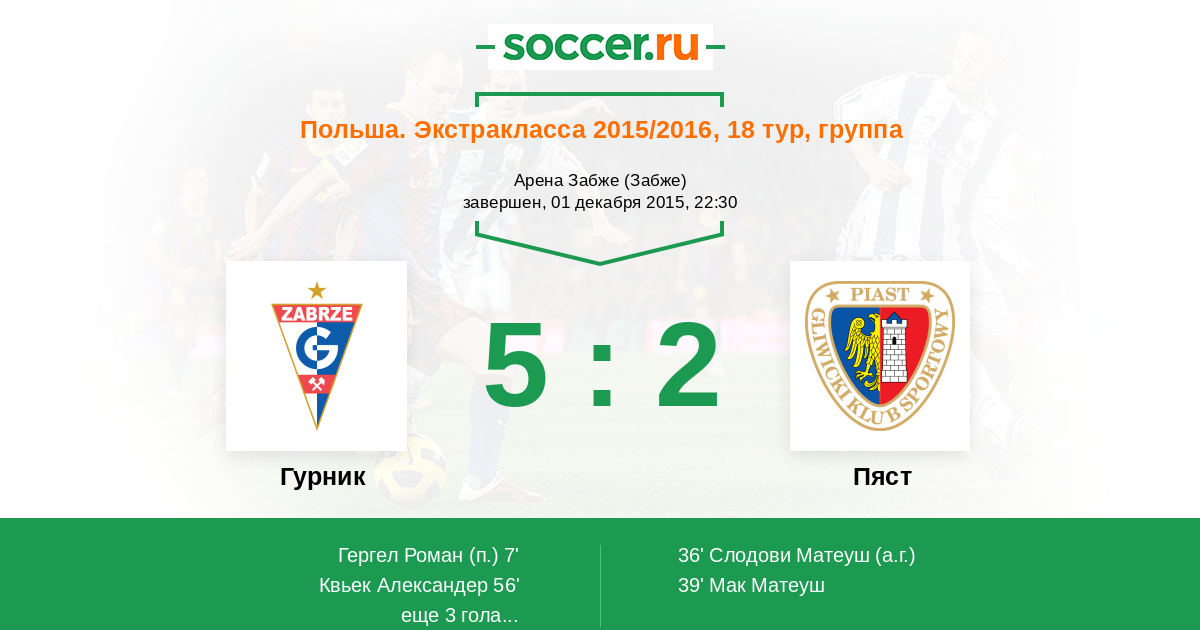 36' (1:1) Автогол Слодови Матеуш (3)