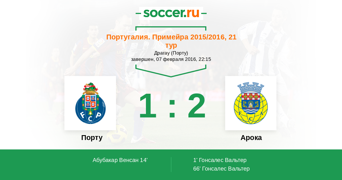 66' (1:2) Гонсалес Вальтер (95)