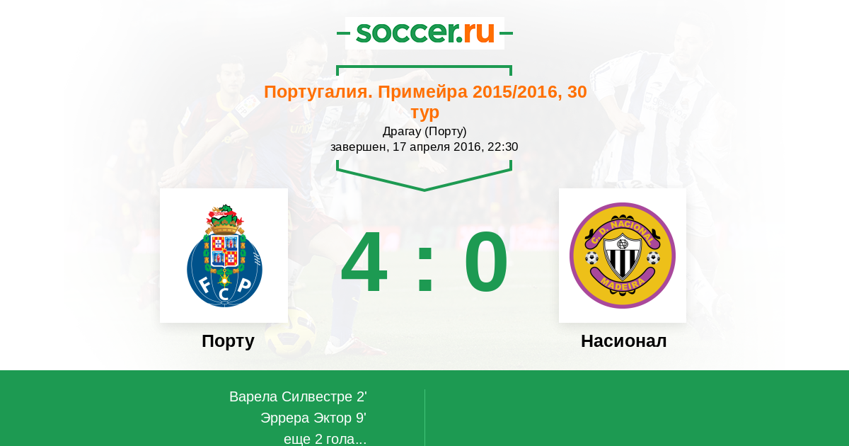 2' (1:0) Варела Силвестре (7)
