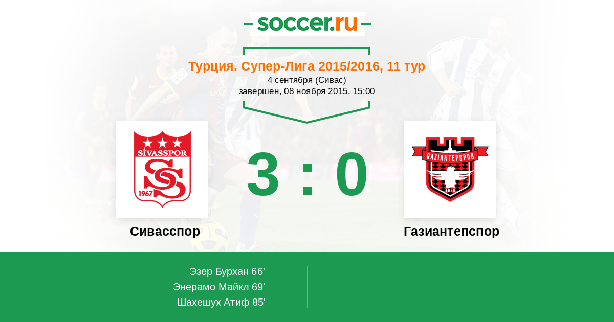 69' (2:0) Энерамо Майкл (14) (Эзер Бурхан (21))