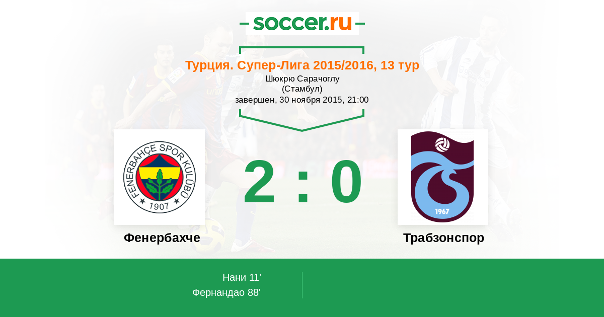 11' (1:0) Нани (17) (Потук Алпер (26))