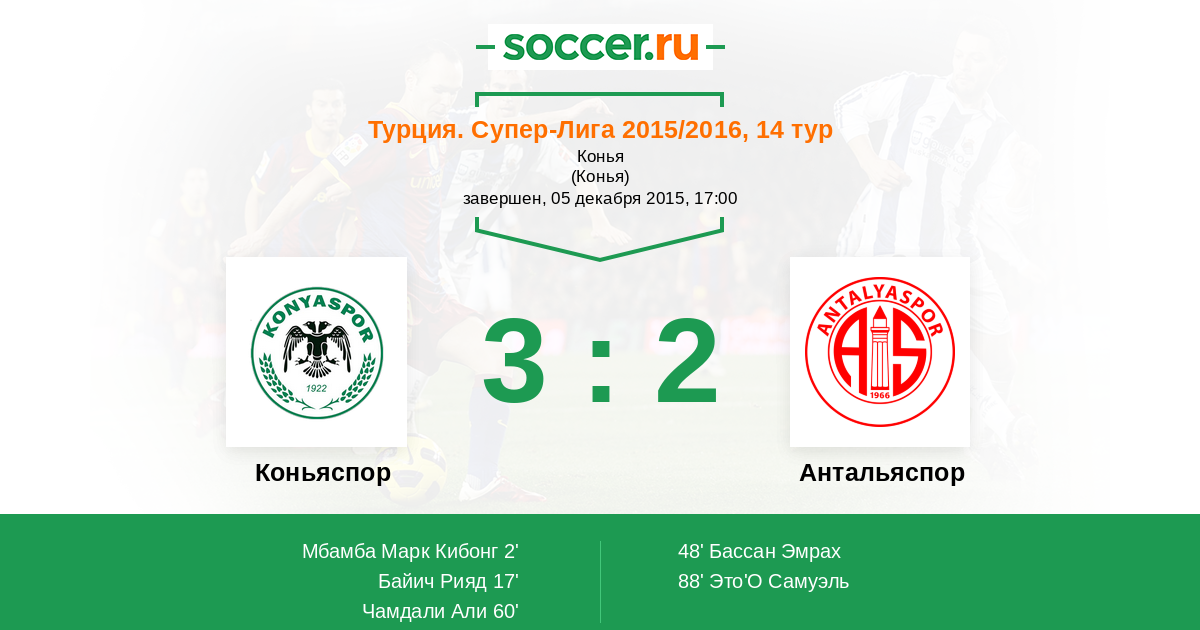 48' (2:1) Бассан Эмрах (11) (Это'О Самуэль (9))