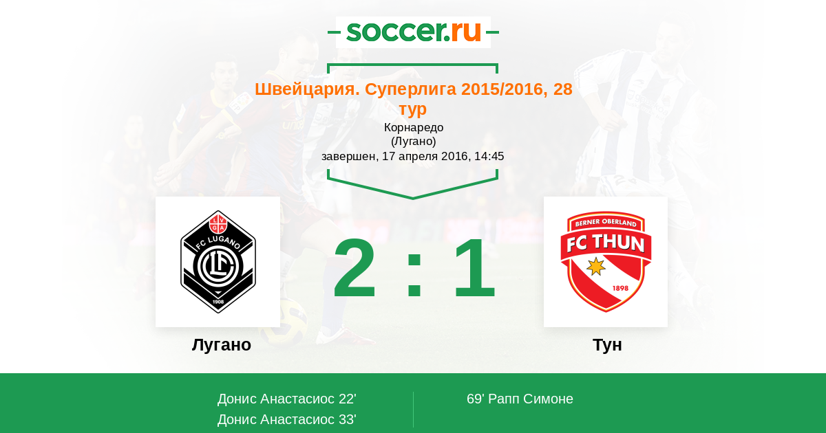 Запасные: 8 Зигфрид Михаэль (с 52'), 20 Мунси Ридж (с 58'), 26 Райнманн Томас, 30 Жосс Свен, 29 Хенци Алехандро, 39 Лаупер Сандро, 18 Руберто Франческо
