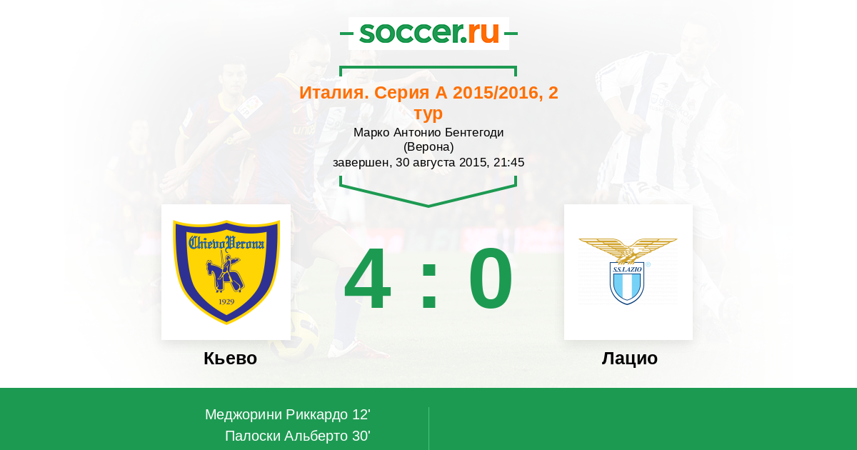 30' (2:0) Палоски Альберто (43) (Меджорини Риккардо (69))