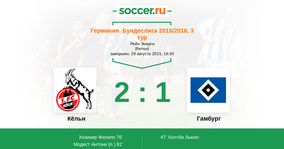 Запасные: 8 Йойич Милош (с 58'), 15 Хозинер Филипп (с 66'), 31 Герхардт Янник (с 81'), 18 Кесслер Томас, 25 Нагасава Казуке, 26 Финне Бор, 29 Швенто Душан