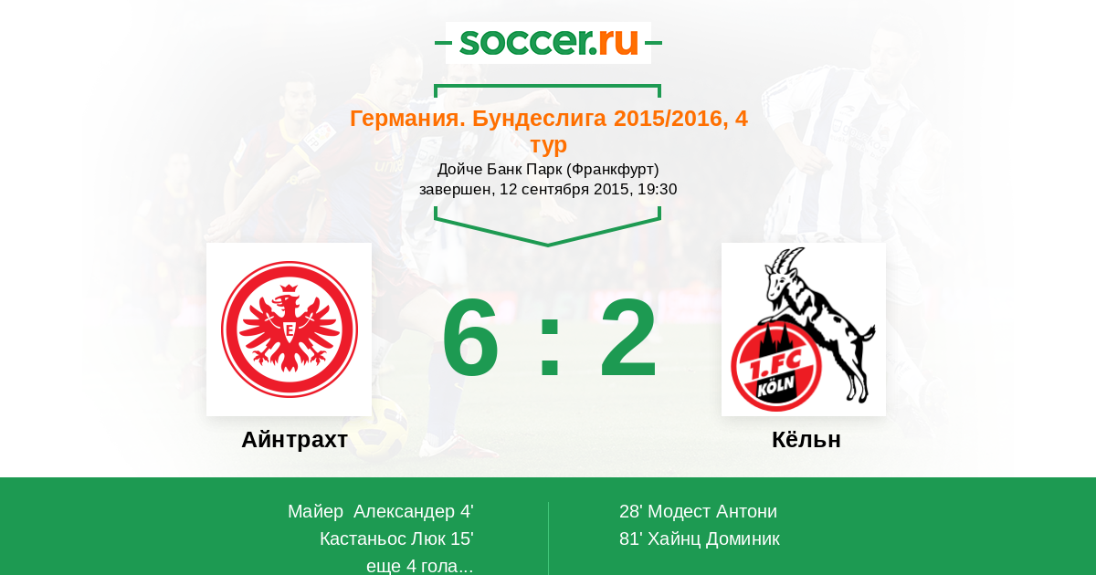 15' (2:0) Кастаньос Люк (30) (Русс Марко (4))