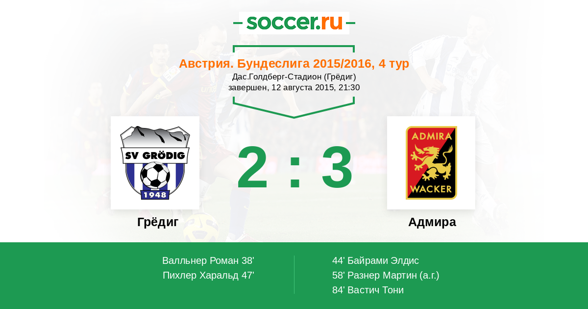 38' (1:0) Валльнер Роман (7) (Кайнц Тобиас (22))