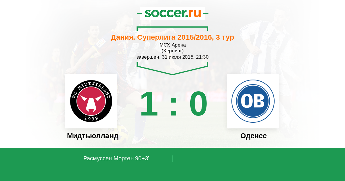 90+3' (1:0) Расмуссен Мортен (9)