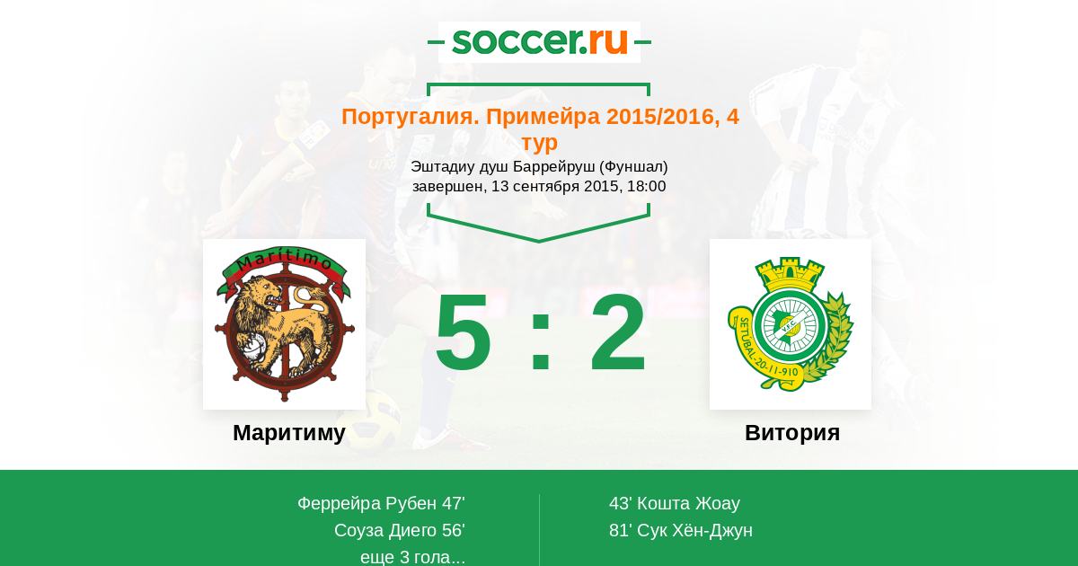 43' (0:1) Кошта Жоау (11)