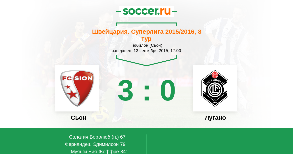 Запасные: 7 Фернандеш Эдимилсон (с 55'), 63 Муянги Бия Жоффре (с 55'), 11 Земан Мартин (с 80'), 18 Фикеншер Кевин, 94 Фоллонье Даниэль, 66 Сичеро Габриэль, 22 Рюфли Винсент