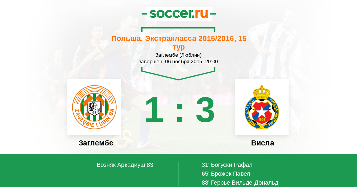 31' (0:1) Богуски Рафал (9)