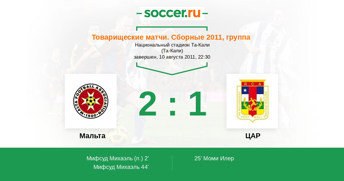 44' (2:1) Мифсуд Михаэль