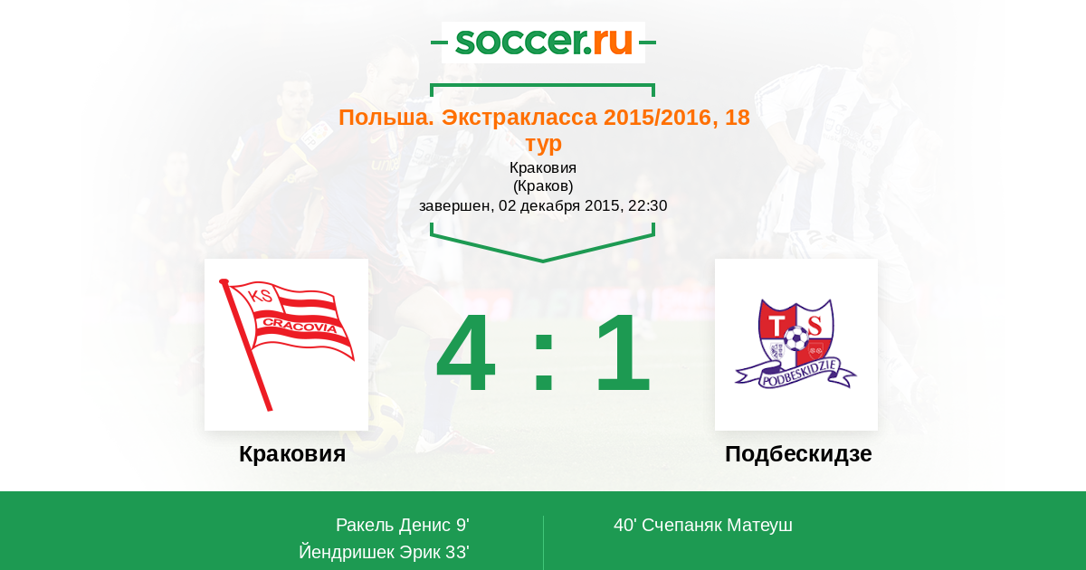 40' (2:1) Счепаняк Матеуш (20)