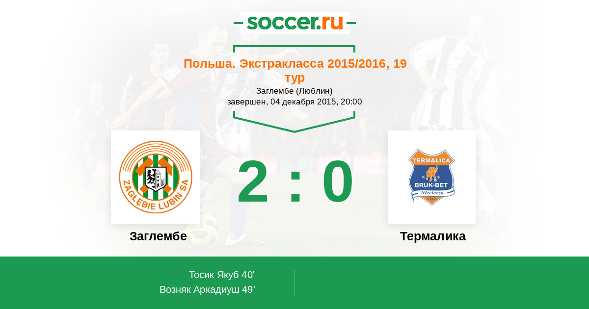 49' (2:0) Возняк Аркадиуш (9)