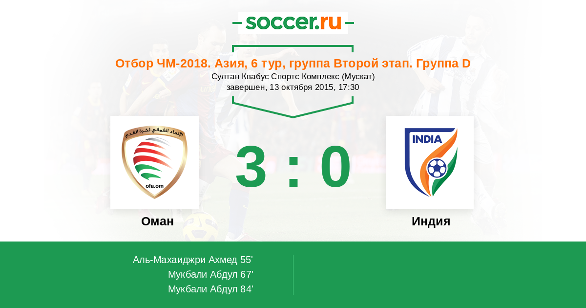 Запасные: Сингх Сехнай (с 46'), Сингх Робин (с 70'), Хонгджи Айборланг (с 81'), Сингх Лео, Сингх Джакиханд, Сингх Каранджит, Гальдер Пронаы, Котал Притам, Субрата Пал, Фанаи Лалчхуанмавиа