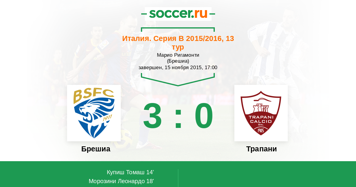 Запасные: 18 Х'Майдат Исмаил (с 57'), 9 Караччиоло Андреа (с 62'), 7 Джованни Абате (с 81'), 6 Ланчини Эдоардо, 12 Ганьо Риккардо, 14 Камильери Винченцо, 27 Марсура Давиде, 31 Далль'Ольо Якопо, 32 Россо Симоне