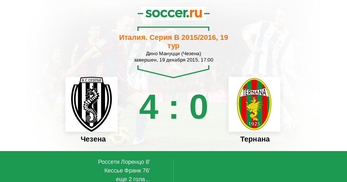 Запасные: 29 Гросси Паоло (с 46'), 28 Палумбо Антонио (с 62'), 6 Меккарьелло Бьяджо (с 79'), 1 Сала Андреа, 5 Мази Альберто, 9 Чераволо Фабио, 16 Дзампа Энрико, 19 Алессио Ло Порто, 26 Давиде Монтелеоне