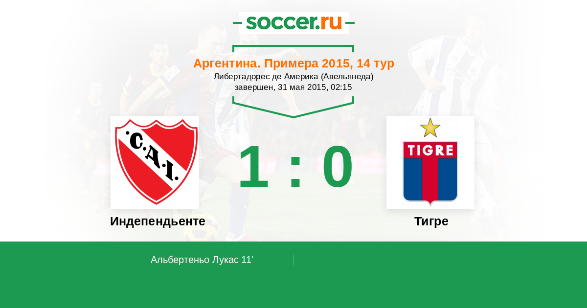 11' (1:0) Альбертеньо Лукас (18) (Хесус Мендес (8))