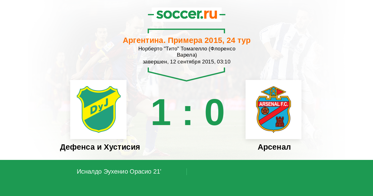 21' (1:0) Исналдо Эухенио Орасио (26) (Теллечеа Эмилиано (7))