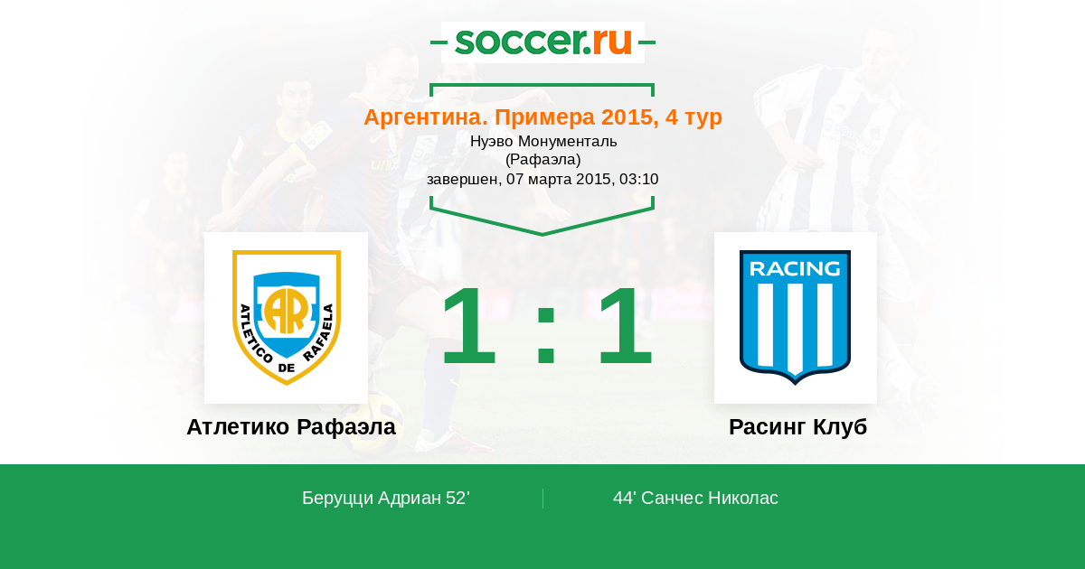 Атлетико Рафаэла - Расинг Клуб
