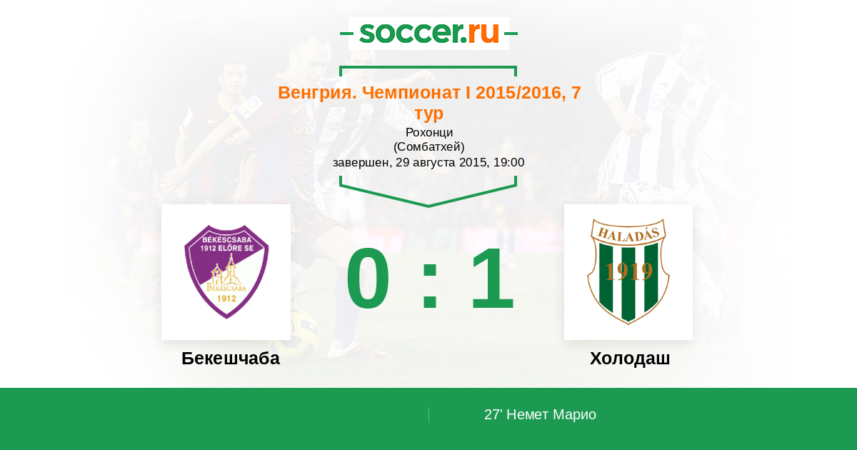 27' (0:1) Немет Марио (31)