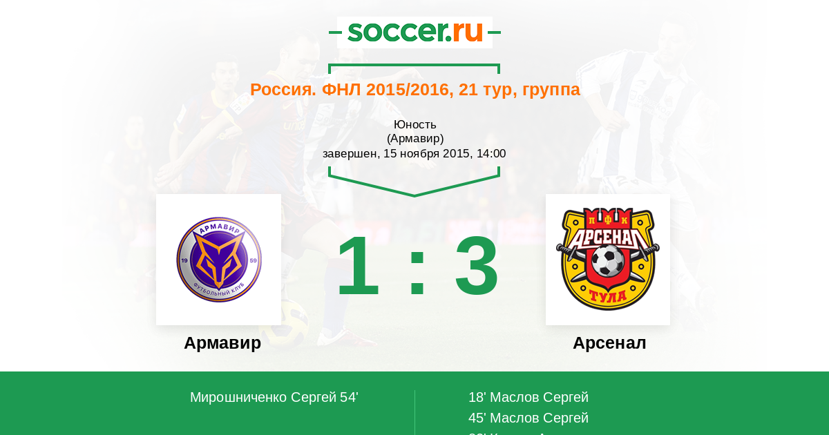 18' (0:1) Маслов Сергей (14)