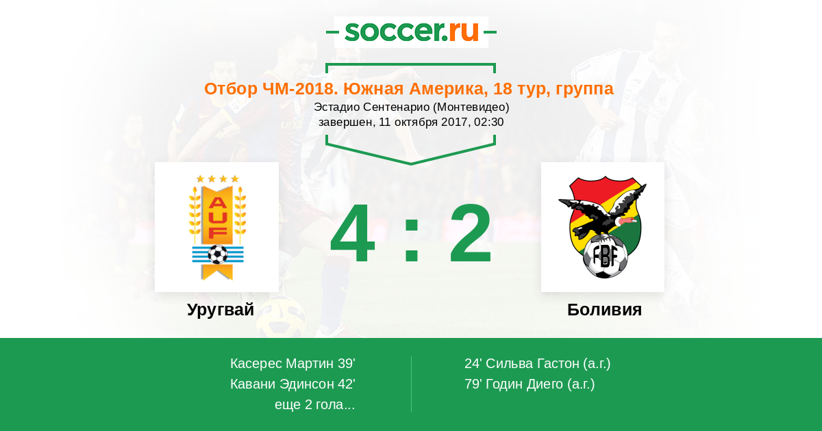42' (2:1) Кавани Эдинсон (21) (Сильва Гастон (13))