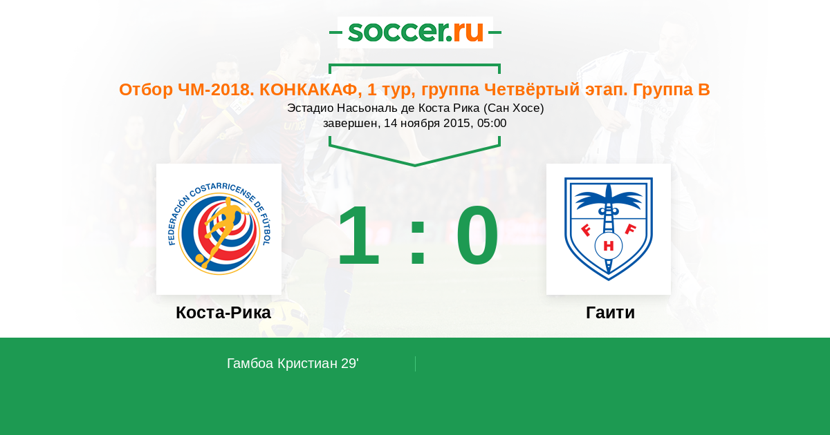 Запасные: Асофейфа Рэндалл (с 46'), Боланьос Кристиан (с 61'), Уренья Маркос (с 73'), Кальво Франсиско, Колиндрес Даниэль, Майри Дэйв, Диас Жуниор, Уостон Кендалл, Гранадос Оскар, Альварадо Эстебан, Эйтель Ариель Родригес