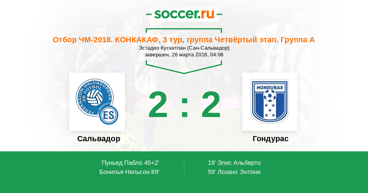Запасные: Гарсия Оскар (с 64'), Рейес Диего Антонио (с 75'), Леверон Джонни (с 84'), Мехия Альфредо, Дискуа Карлос, Альварадо Эвер, Фигероа Хенри, Лопес Луис Аурелио, Киото Робинсон Ромелль, Вилмер Крисанто, Костли Карло, Каналес Рикардо