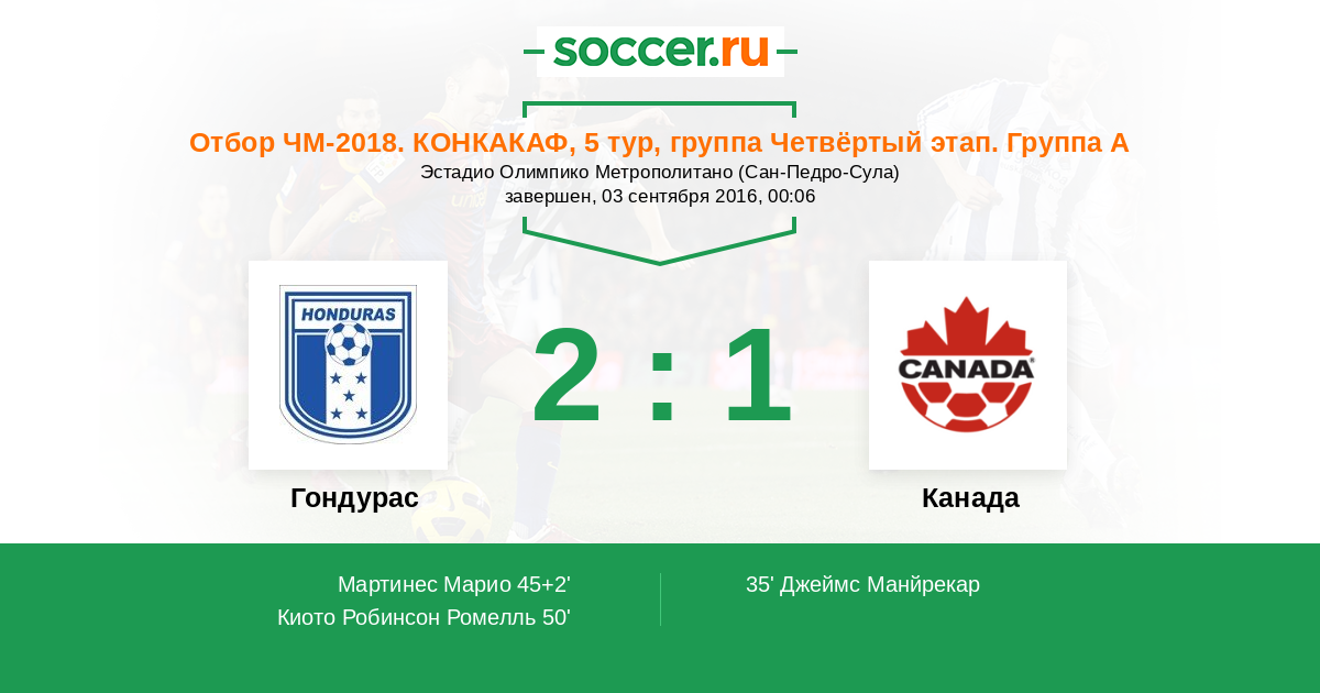 35' (0:1) Джеймс Манйрекар