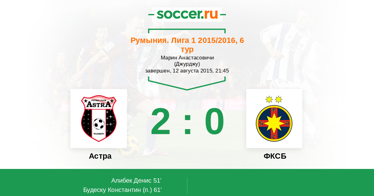 61' (2:0) Будеску Константин (10)