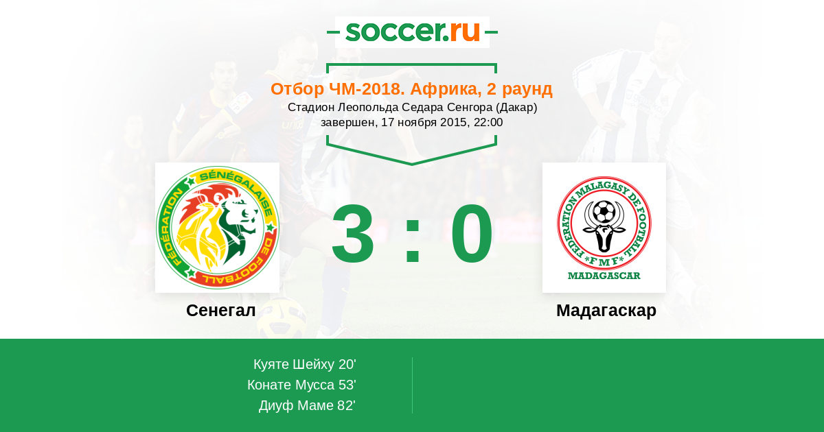 Запасные: Ндойе Шейк (с 60'), Сане Ламин (с 84'), Санкаре Юнус (с 88'), Амара Бэби, Сиссоко Исса, Ндиайе Хадим, Диаме Мохамед, Ниасс Умар, Исса Сарр, Гомис Лис, Туре Зарго, Н'Диайе Папе
