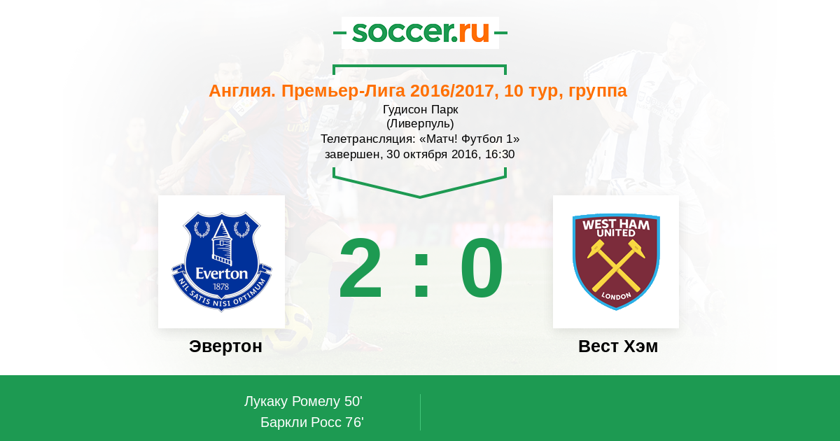 Ливерпуль, Гудисон Парк Телетрансляция: «Матч! Футбол 1»