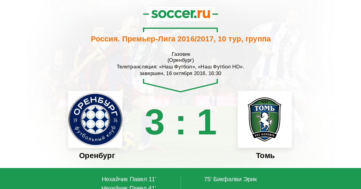 Оренбург, Газовик Телетрансляция: "Наш Футбол", "Наш Футбол HD".
