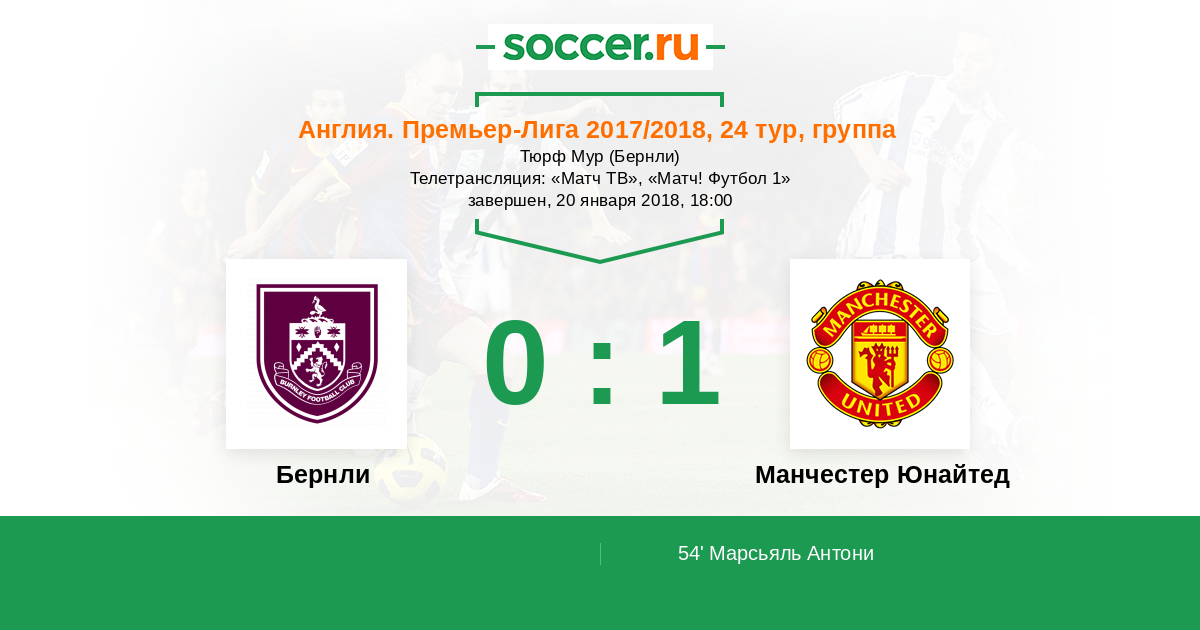 Бернли, Тюрф Мур, зрителей: 21841 Телетрансляция: "Матч ТВ", "Матч! Футбол 1"