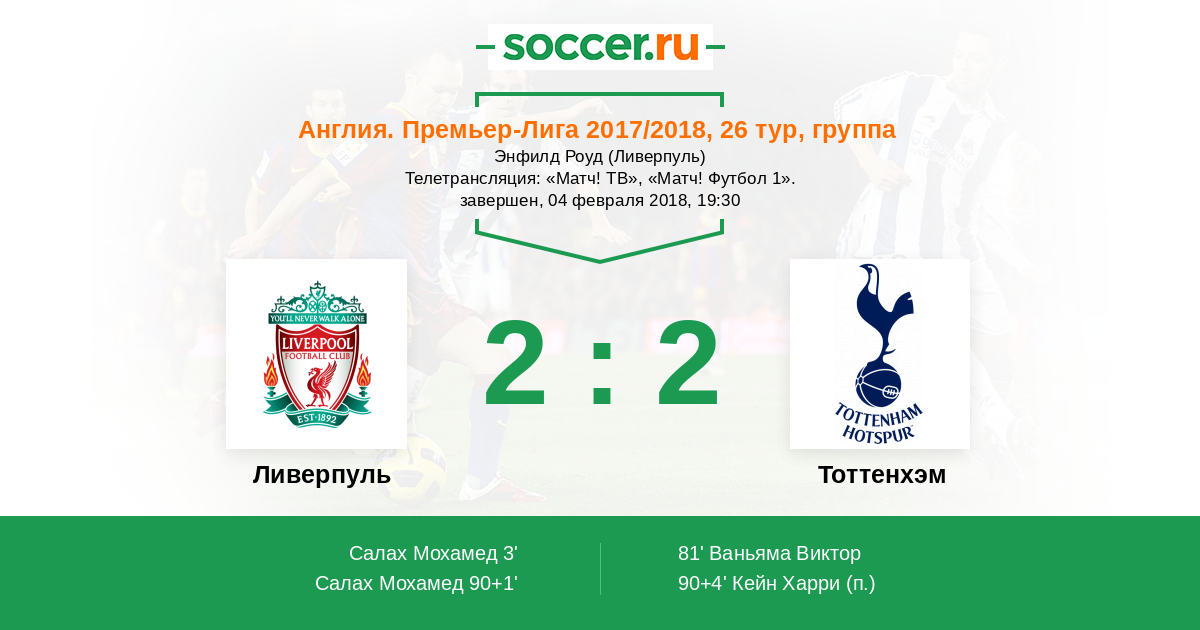 Ливерпуль, Энфилд Роуд Телетрансляция: "Матч! ТВ", "Матч! Футбол 1".