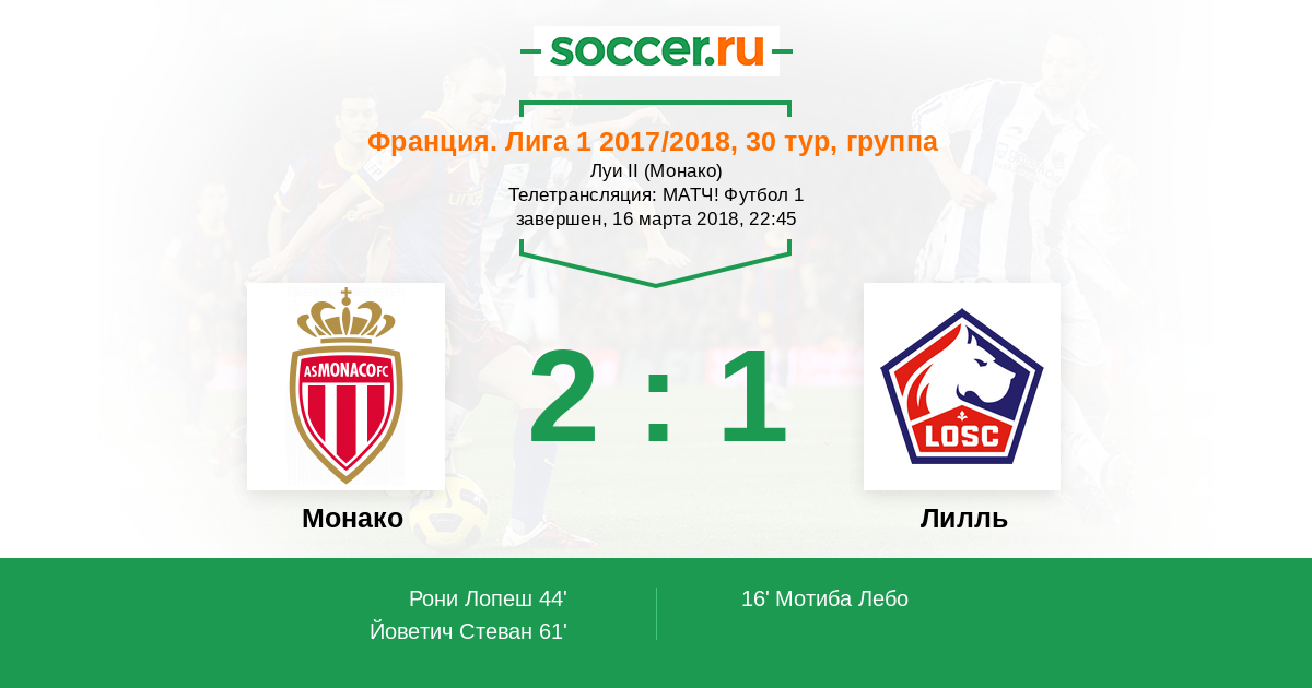 Телетрансляция: МАТЧ! Футбол 1