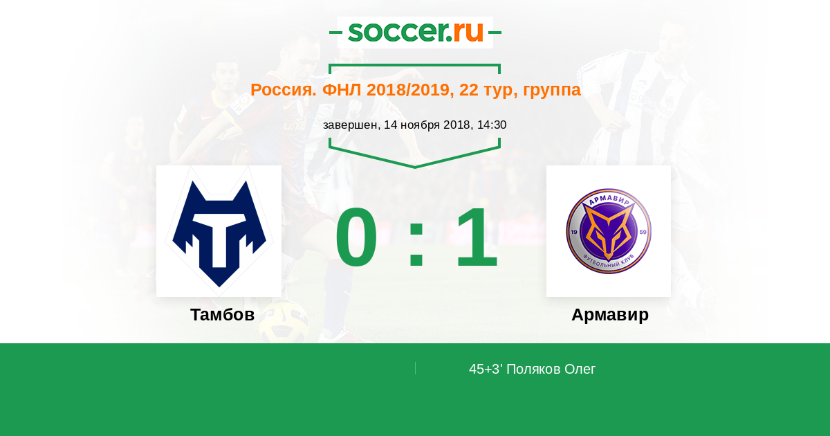 Кеф 6 на победу Тамбова, 1 на победу Армавира. Хотя Армавир в конце таблице и играет на выезде, а Тамбов дома и борется за повышение. Пахнет хот-догом...