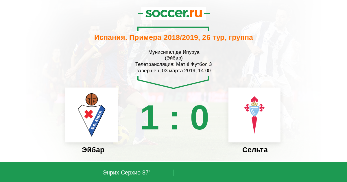 Эйбар, Мунисипал де Ипуруа Телетрансляция: Матч! Футбол 3