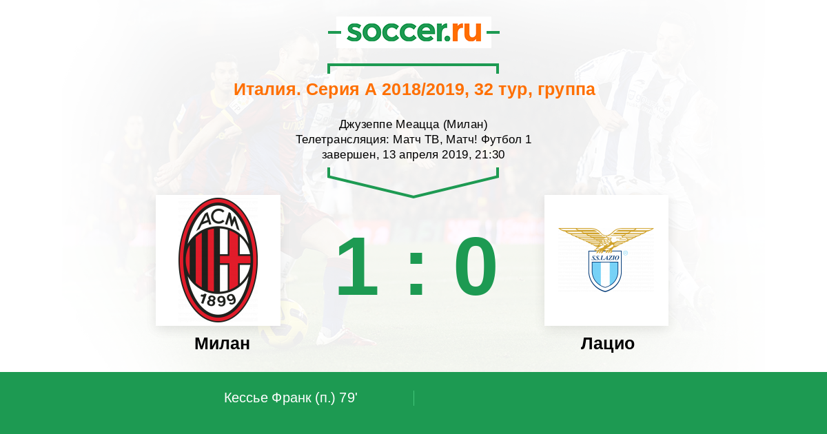 Милан, Джузеппе Меацца Телетрансляция: Матч ТВ, Матч! Футбол 1