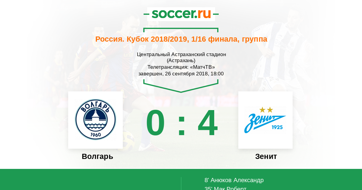 Волгарь-Зенит 4-0